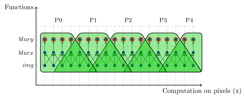 PolyMage’s optimizer primarily relies on the polyhedral framework to automatically perform a sequence of transformations for parallelization and locality optimization on multicore processors. The transformations include ways to enable fusion and tiling across image processing stages, using an asymmetric overlapped tiling technique.