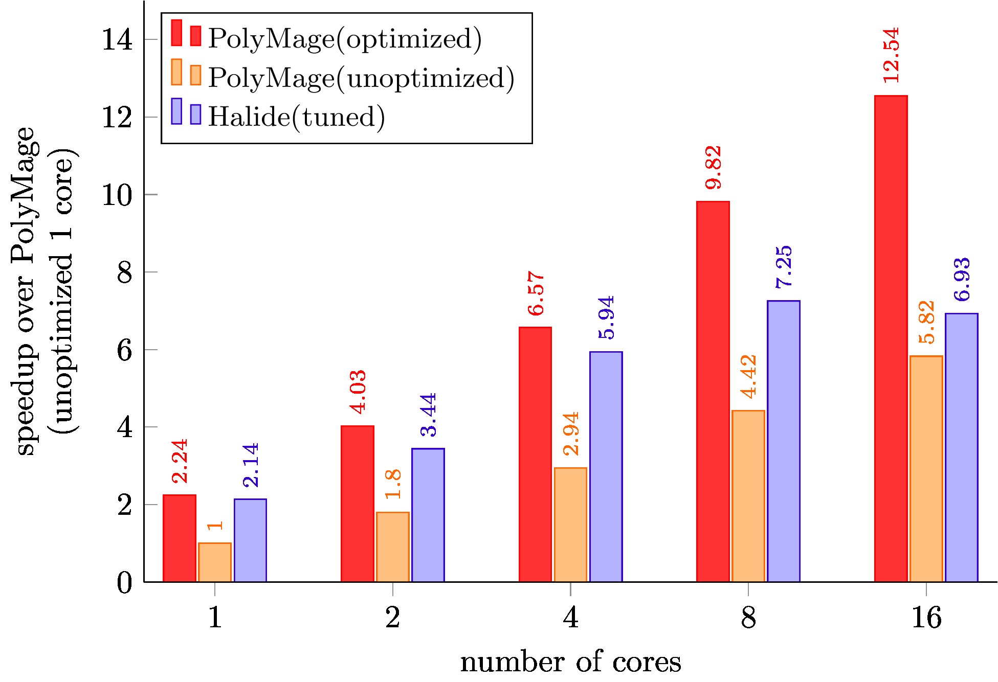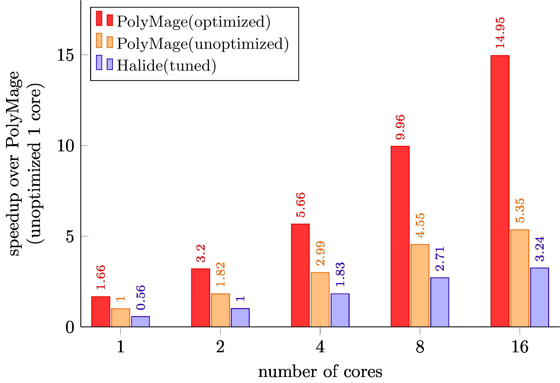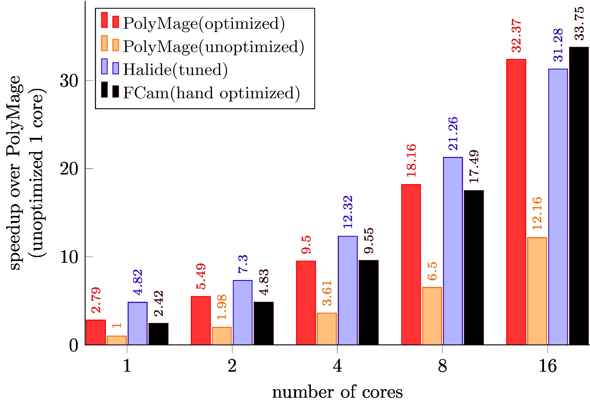 PolyMage (unoptimized) is code generated with only scalar optimizations enabled.